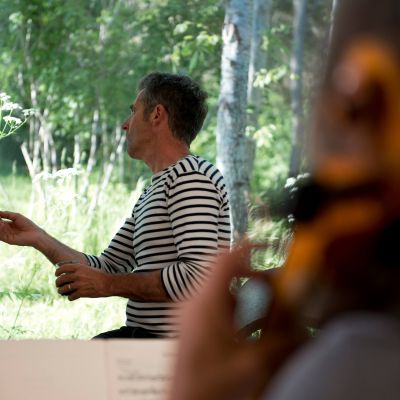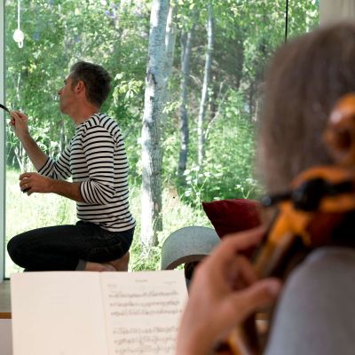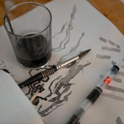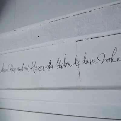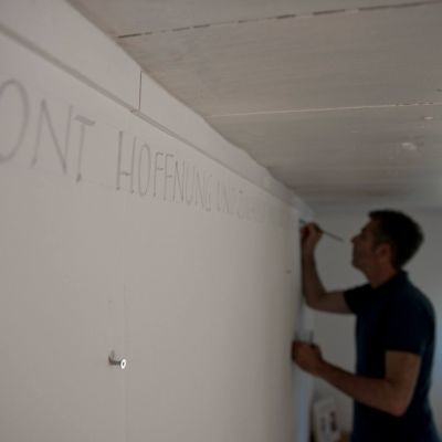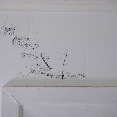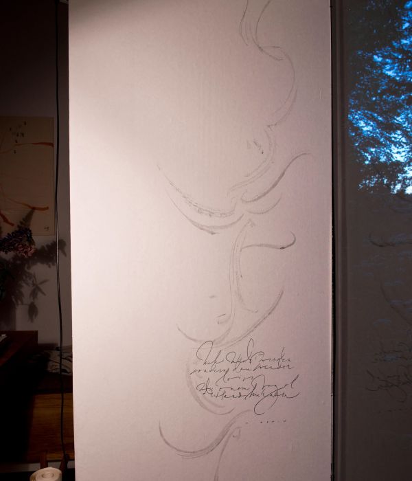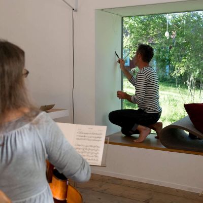 Für das Fensterbild arbeitete ich zu den Klängen eines Cellos, dass über den Text improvisierte.